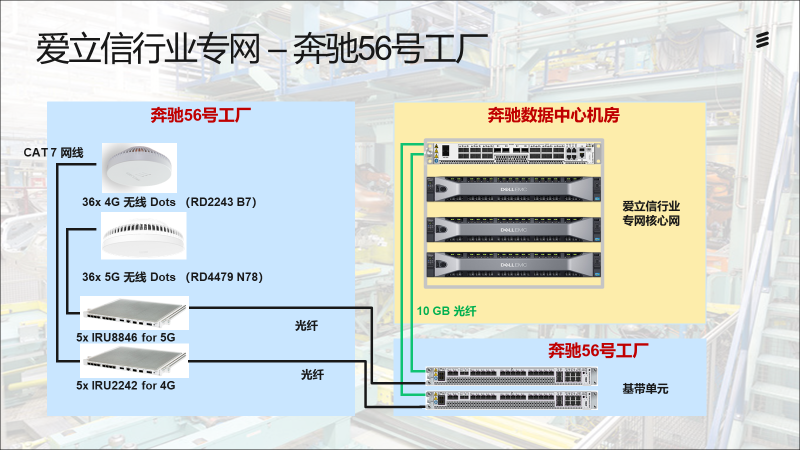 愛立信以強大的5G網(wǎng)絡設(shè)備為基礎(chǔ),針對56號工廠智能制造,工業(yè)4.0,柔性生產(chǎn)的需求特點,打造了新一代的5G企業(yè)專網(wǎng)解決方案,將標準蜂窩網(wǎng)絡引入現(xiàn)代制造。