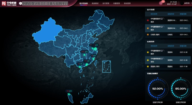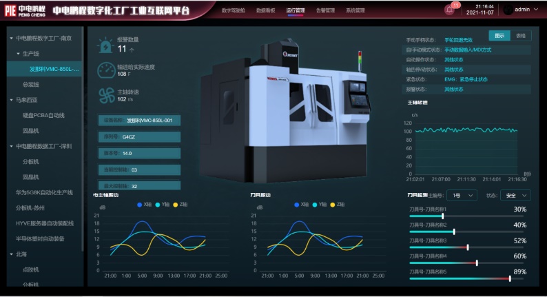 通過對智能裝備運行的實時監測,提供遠程維護、故障預測、性能優化能一系列服務,并反饋優化產品設計,實現企業服務化轉型;結合物聯網系統和工業大數據預測性維護、診斷,完成對智能裝備的管控,讓設備更智能,產線更精益,有效做到提質、增效、降本;實現中電鵬程智能裝備的設計、加工過程監控、物流、質量檢測等關鍵環節的全流程數字化管控,提高車間生產效率和生產管理能力,細化材料、工時等消耗統計,縮減企業生產和管理成本,實現車間的產品制造生產的數字化。該系統技術能夠有效彌補MESERP系統在裝備生產環節中的數字化、智能化管控方面的不足之處,實現工藝數據上傳、規范下達、質量控制追溯、工時精準管控等車間級精細管理,解決管控軟件進車間、取真數據等難題,突破車間級底層設備的互聯互通、制造大數據的如何應用難題。