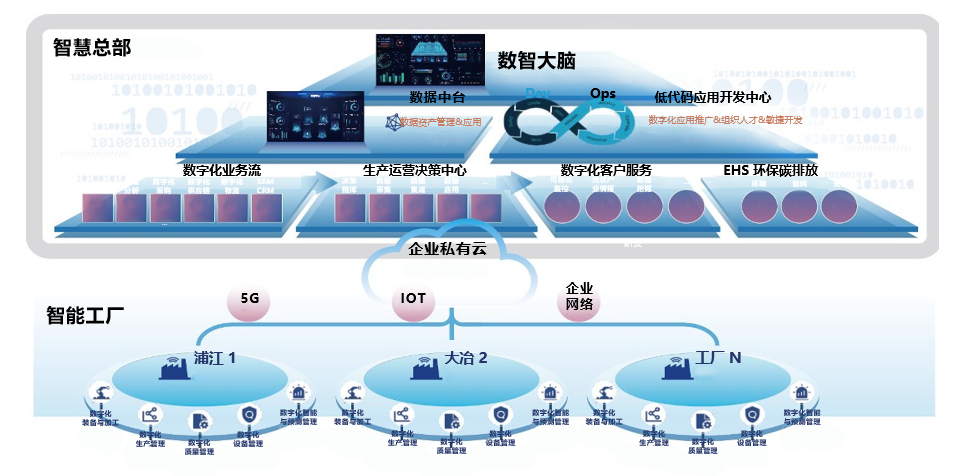 整體采用 總部 + 智能工廠 全面數(shù)智化,實現(xiàn)生產(chǎn)的標準化和協(xié)同化;
