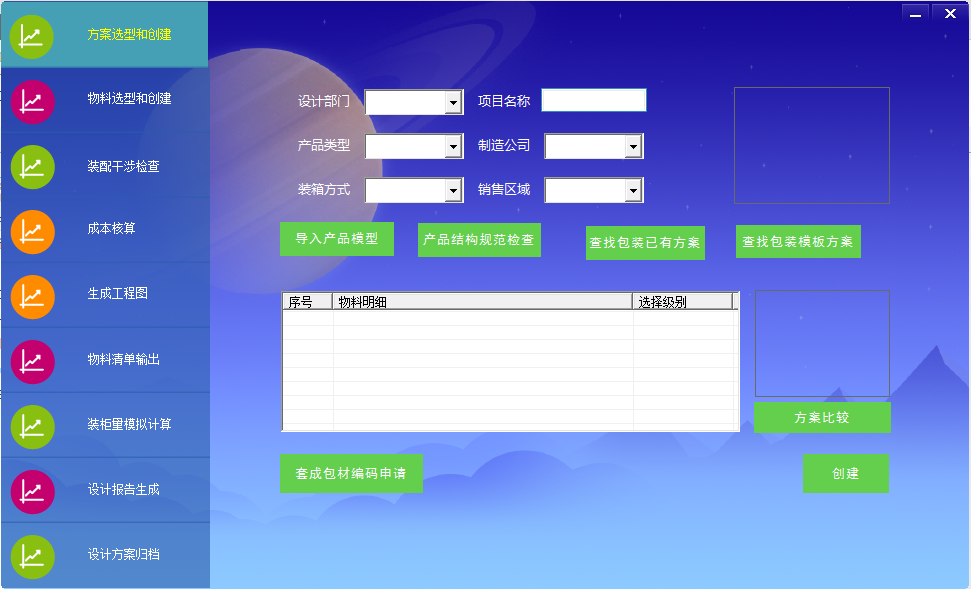 1、方案選型: 根據(jù)輸入信息調(diào)取數(shù)據(jù)庫中的已有方案,并可以對(duì)比方案。