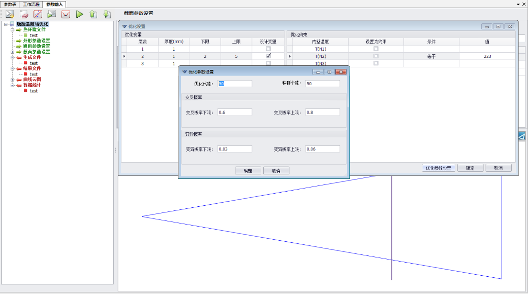 軟件嵌入多維(≥5維)優化算法,可設置的優化目標和約束條件,進行設計變量的優化設計。