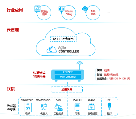 ? 敏捷控制器統一管理邊緣計算網關,并對內部VM和容器以及工業APP進行端到端生命周期管理;