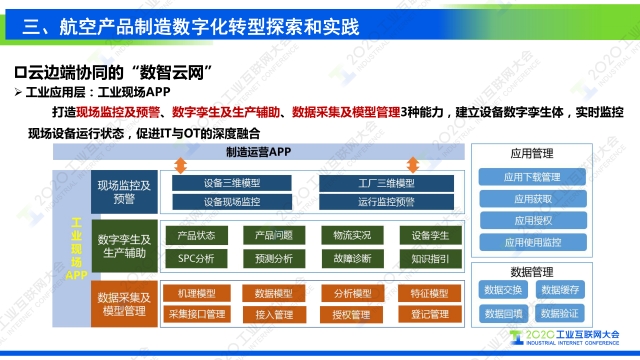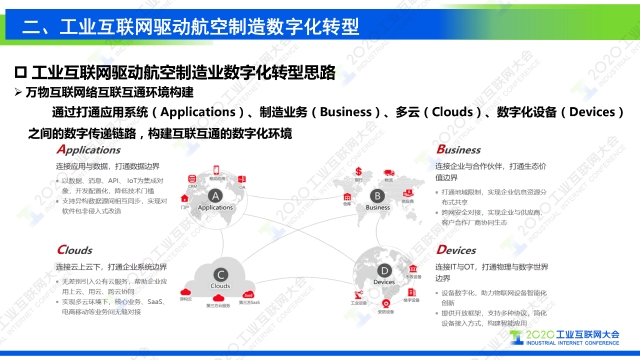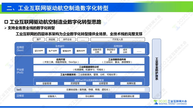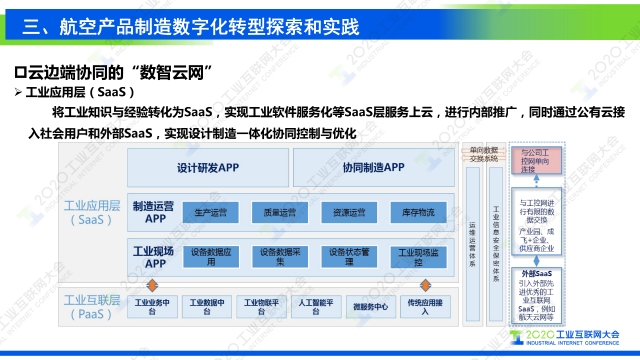 在2020工業(yè)互聯網大會“工業(yè)互聯網行業(yè)應用”主題論壇上,航空工業(yè)成都飛機工業(yè)集團有限公司流程與信息化部主任謝剛發(fā)表題為《工業(yè)互聯網支撐復雜航空產品制造數字化轉型》的演講,圍繞工業(yè)互聯網分享了航空制造企業(yè)數字化轉型升級路徑。