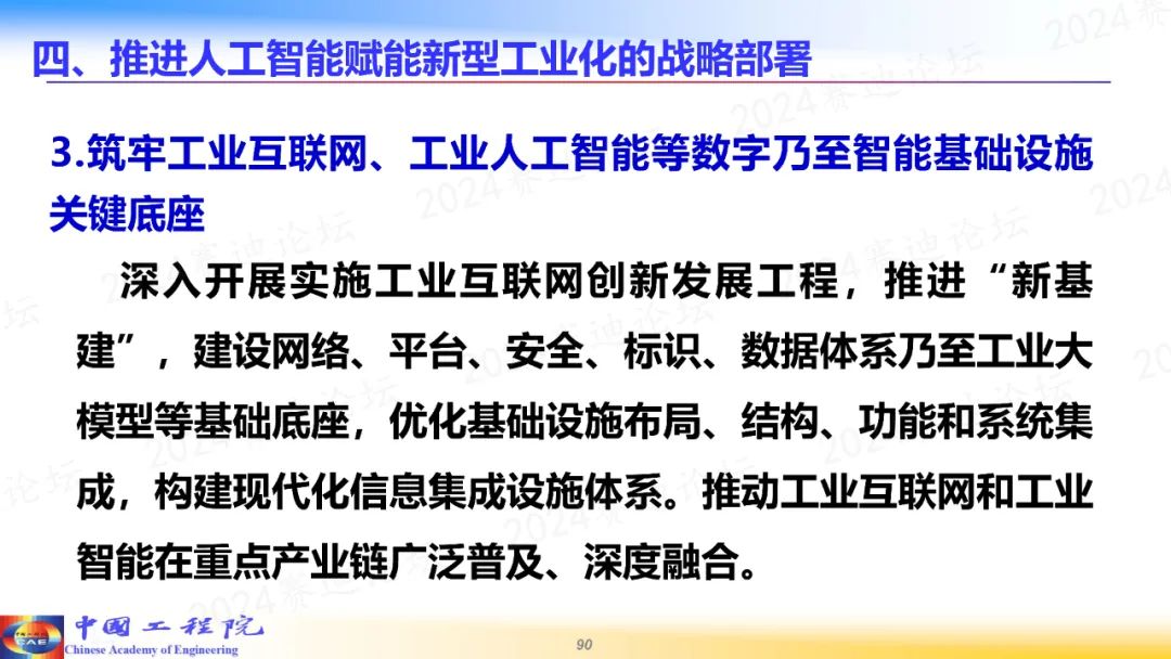 三是筑牢工業互聯網、工業人工智能等數字乃至智能基礎設施關鍵底座。深入開展實施工業互聯網創新發展工程,推進“新基建”,建設網絡、平臺、安全、標識、數據體系乃至工業大模型等基礎底座,優化基礎設施布局、結構、功能和系統集成,構建現代化信息集成設施體系。推動工業互聯網和工業智能在重點產業鏈廣泛普及、深度融合。
