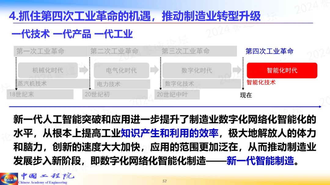 第一,人工智能技術與先進制造技術正在深度融合,其中,人工智能技術是賦能技術,為主導;制造技術是本體技術,為主體;根本任務是實現制造業數字化轉型、智能化升級。