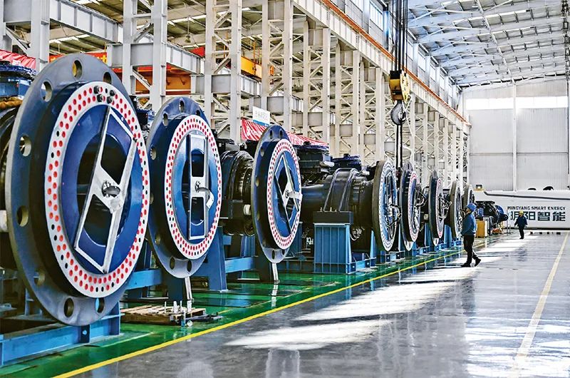 綠色低碳是新型工業化的生態底色。近年來,內蒙古自治區錫林郭勒盟依托風、光資源優勢,大力發展風電裝備等新能源制造產業。圖為2024年5月15日,工人在錫林郭勒盟明陽新能源有限公司總裝車間作業。 新華社記者 李志鵬/攝