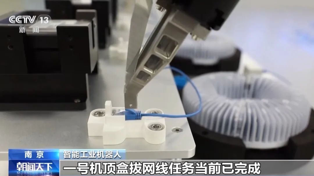 總臺記者現場也體驗了一下工廠正在開發的人機交互作業。記者先后發出拔出、插入機頂盒網線的指令,精細化的操作,智能工業機器人都順利完成。