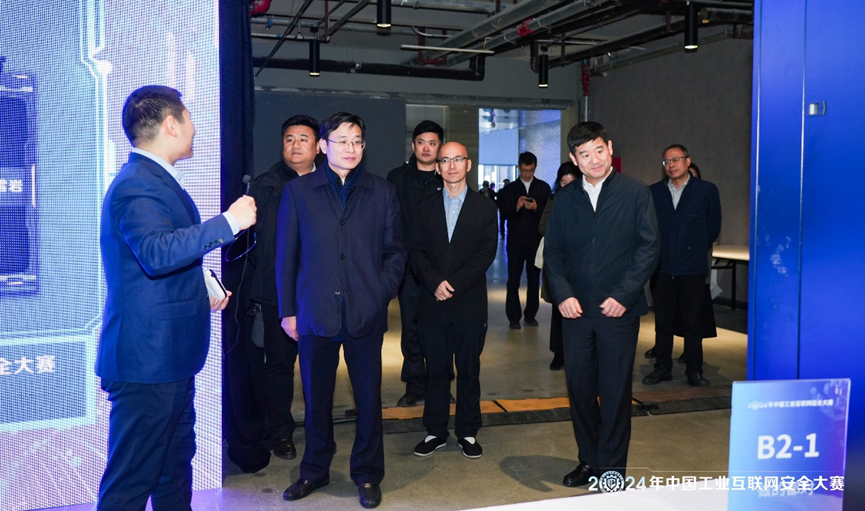 同時,閉幕式上還邀請中國信通院、北京網(wǎng)藤科技有限公司、北京國信網(wǎng)聯(lián)科技有限公司、北京衛(wèi)達信息技術(shù)有限公司、北京安天網(wǎng)絡(luò)安全技術(shù)有限公司專家分別就工業(yè)互聯(lián)網(wǎng)安全政策標準解讀、企業(yè)級網(wǎng)絡(luò)安全防護體系建設(shè)與運營、基于SaaS的工業(yè)企業(yè)一體化網(wǎng)絡(luò)安全實踐、基于動態(tài)防御技術(shù)體系的工業(yè)網(wǎng)絡(luò)安全實踐、工業(yè)網(wǎng)絡(luò)環(huán)境下的勒索病毒防治等方面發(fā)表了主題演講。大賽閉幕式暨頒獎儀式舉辦前,與會領(lǐng)導(dǎo)嘉賓共同巡視參觀了競賽場景。