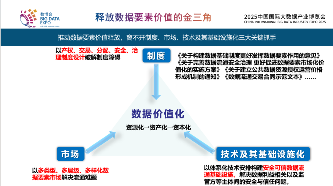 釋放數(shù)據(jù)要素價值是一個“金三角”:一是制度,二是市場,三是技術(shù)。其中,技術(shù)方面最終要通過一個基礎(chǔ)設(shè)施化的方式來保障實現(xiàn)全國范圍內(nèi)跨行業(yè)、跨區(qū)域數(shù)據(jù)價值的釋放。