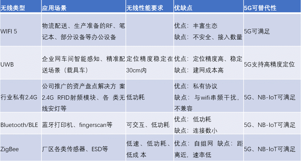 表1:5G對其他工業(yè)無線網(wǎng)絡技術(shù)可替代性分析
