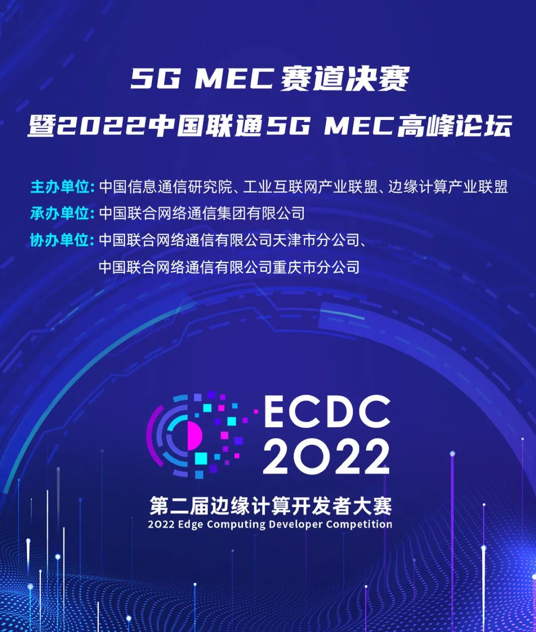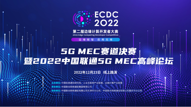 2022年12月23日,第二屆邊緣計算開發(fā)者大賽(ECDC 2022)“5G MEC”賽道決賽暨2022中國聯(lián)通5G MEC高峰論壇以線上形式成功舉辦。本次活動由中國信息通信研究院、工業(yè)互聯(lián)網(wǎng)產(chǎn)業(yè)聯(lián)盟、邊緣計算產(chǎn)業(yè)聯(lián)盟共同主辦,中國聯(lián)合網(wǎng)絡通信集團有限公司承辦,中國聯(lián)合網(wǎng)絡通信有限公司天津市分公司、中國聯(lián)合網(wǎng)絡通信有限公司重慶市分公司協(xié)辦。來自中國信通院、中國聯(lián)通、重慶朗維機電有限公司、網(wǎng)絡通信與安全紫金山實驗室等單位的領導、行業(yè)專家、參賽成員等共同參與了本次活動。