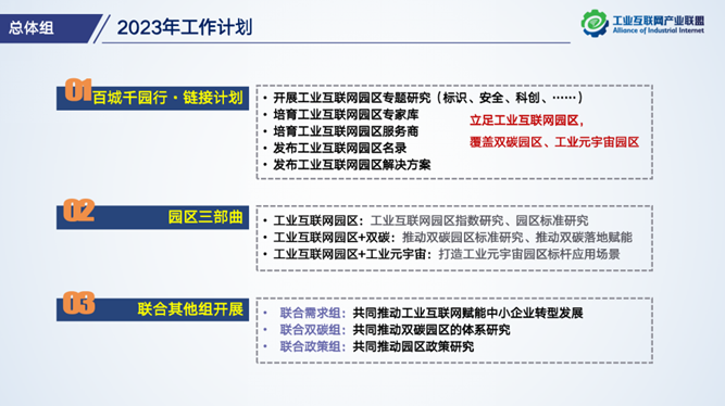 下一步,總體組將繼續推動工業互聯網園區相關工作,一是持續開展百城千園行·鏈接計劃,從專題研究、專家、服務商、解決方案、園區名錄等五個角度持續賦能工業和信息化部“百城千園行”活動;二是推動工業互聯網園區三部曲的研究和落地;三是聯合需求組推動中小企業數字化轉型,聯合雙碳組推動雙碳園區體系化研究,聯合政策組推動園區政策研究。