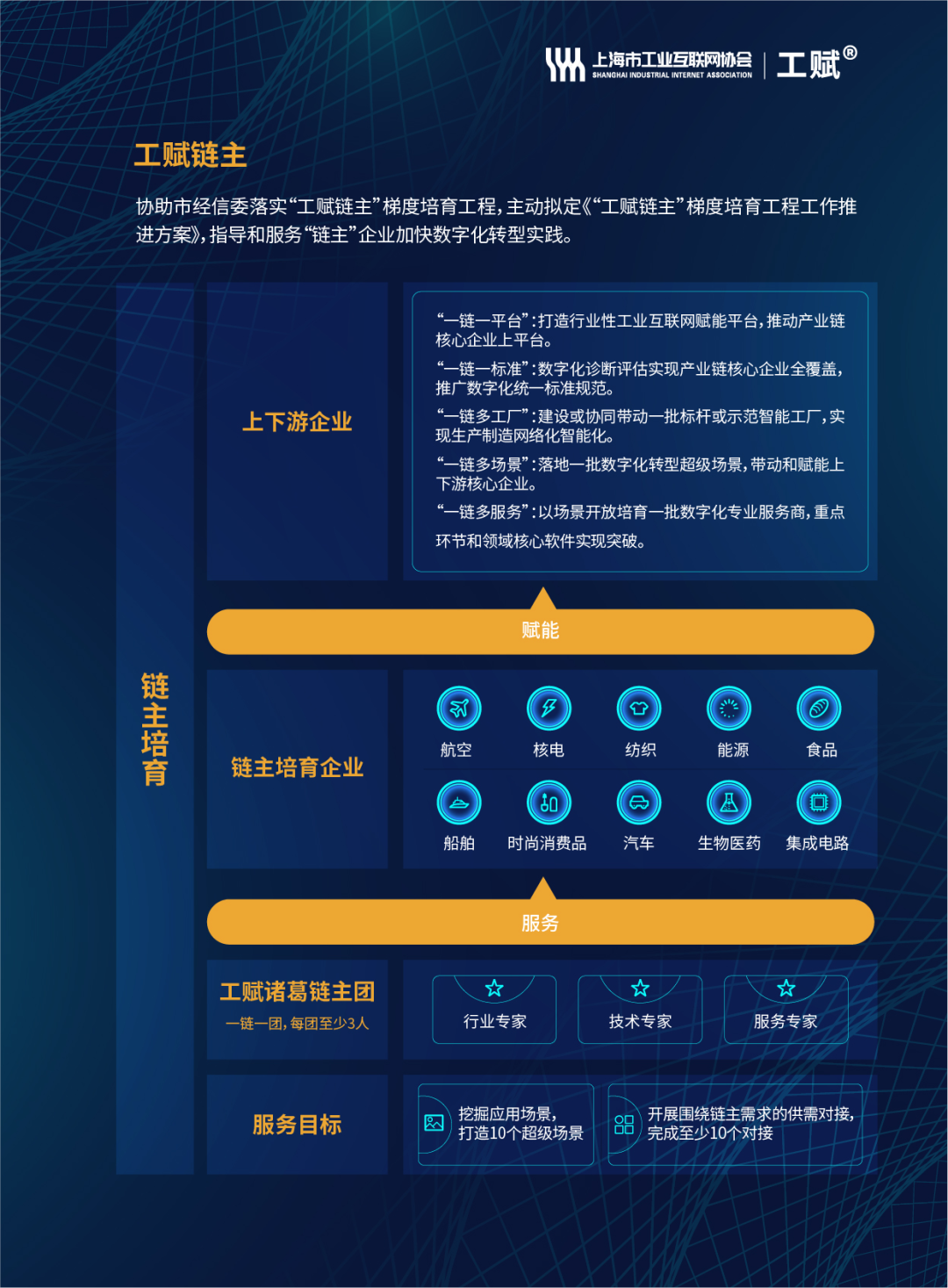 根據(jù)《上海市制造業(yè)數(shù)字化轉(zhuǎn)型實施方案》,到2025年上海將培育40家“工賦鏈主”,會上開展“工賦鏈主”建圈強(qiáng)鏈結(jié)對儀式,通過“工賦鏈主”,集中帶動電力、紡織、船舶及汽車等4個行業(yè)鏈上企業(yè)尤其是中小企業(yè)低成本、高效率地進(jìn)行數(shù)字化轉(zhuǎn)型。在“一鏈一平臺”和“一鏈一標(biāo)準(zhǔn)”的基礎(chǔ)上,還要打造“一鏈多工廠”“一鏈多場景”和“一鏈多服務(wù)”,形成極具特點的推進(jìn)制造業(yè)數(shù)字化轉(zhuǎn)型的“上海模式”。