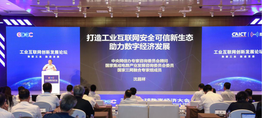 2023年7月5日,2023全球數字經濟大會—工業互聯網創新發展專題論壇在北京舉辦。工業和信息化部信息通信管理局一級巡視員王鵬,北京市經濟和信息化局黨組成員、副局長顧瑾栩,北京市通信管理局黨組成員、副局長王暉,北京市順義區委常委、副區長徐曉俊,中國信息通信研究院(以下簡稱“中國信通院”)紀委書記李德文為活動致辭;中國工程院院士沈昌祥、中國信通院工業互聯網與物聯網研究所副所長羅松出席活動并作主旨報告;工業互聯網領域的行業專家、企業代表以及新聞媒體參加了本次活動。