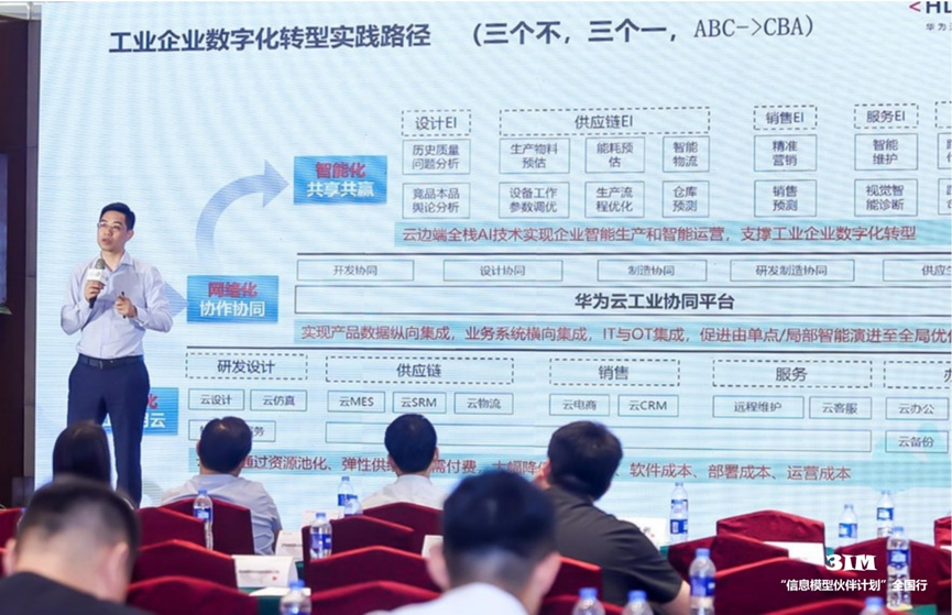 與會單位圍繞政府政策、數(shù)據(jù)融合互操作、數(shù)字化工具供給、數(shù)字化技術(shù)應(yīng)用等方面展開交流和對接,并分別就中小企業(yè)數(shù)字化發(fā)展路徑、信息模型賦能、未來建議等進行主題研討。中小企業(yè)數(shù)字化轉(zhuǎn)型實踐路徑包含三個階段:一是數(shù)據(jù)資源池化,企業(yè)研發(fā)設(shè)計、供應(yīng)鏈、銷售、服務(wù)、辦公等數(shù)據(jù)可通過公有云來滿足各業(yè)務(wù)階段數(shù)字化轉(zhuǎn)型需求,降低軟件部署和運營成本。二是網(wǎng)絡(luò)化,通過產(chǎn)品數(shù)據(jù)縱向集成,業(yè)務(wù)系統(tǒng)橫向集成,促進由單點/局部智能向全局優(yōu)化發(fā)展。三是智能化,利用云邊端全棧AI技術(shù)實現(xiàn)企業(yè)智能化生產(chǎn)和運營。