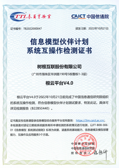 根云平臺V4.0通過信息模型伙伴計(jì)劃系統(tǒng)互操作檢測