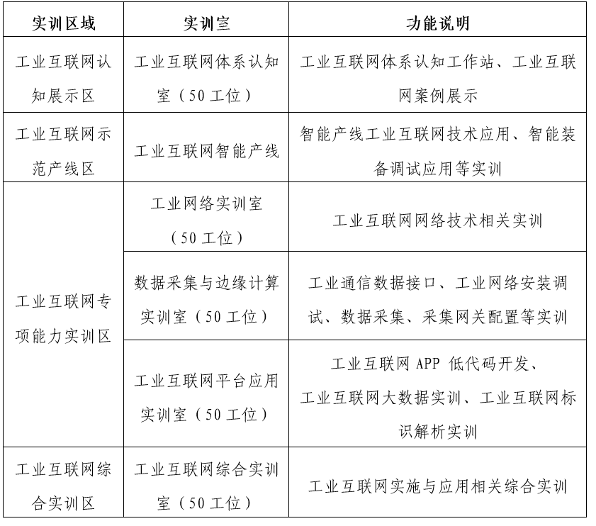 工業互聯網綜合實訓區域:工業互聯網綜合實訓區將實現典型工業產線的自動化控制、數據采集與應用、定制化生產、云邊協同制造等場景,支持工業互聯網綜合實訓教學,讓學生基本具備工業互聯網實施與應用的綜合能力。