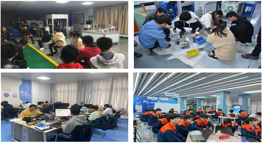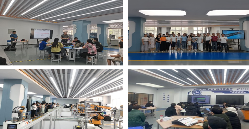 (三)基地與相關合作企業定期開展短期培訓工作。2023年基地依托校企共建智能制造創新工廠,由安徽佐標智能科技有限公司、埃夫特智能裝備股份有限公司等企業參與,共同開展了“系統集成與應用師資班培訓”工作。培訓工作順利推動智能制造創新工廠系統集成與應用以及相關課程資源開發。