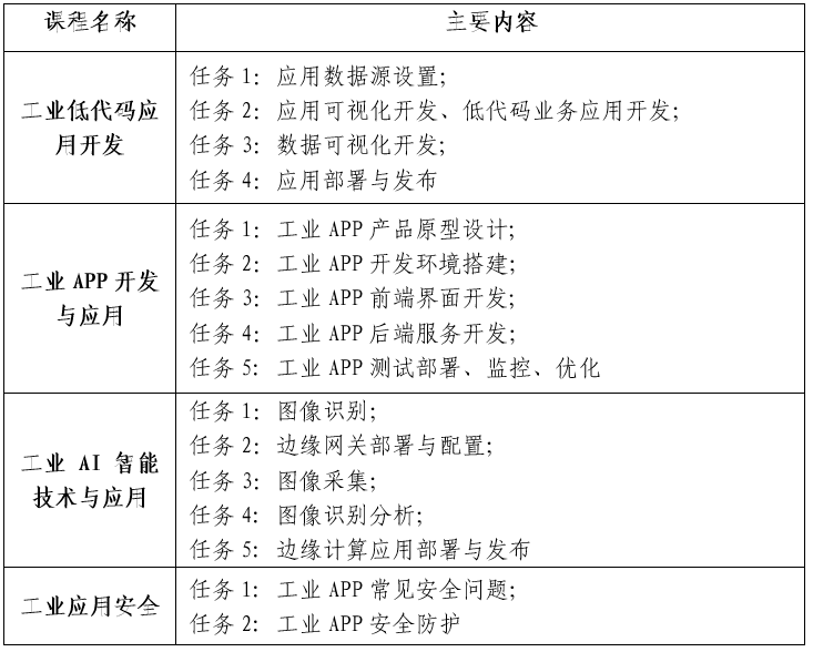 工業互聯網應用開發課程設置: