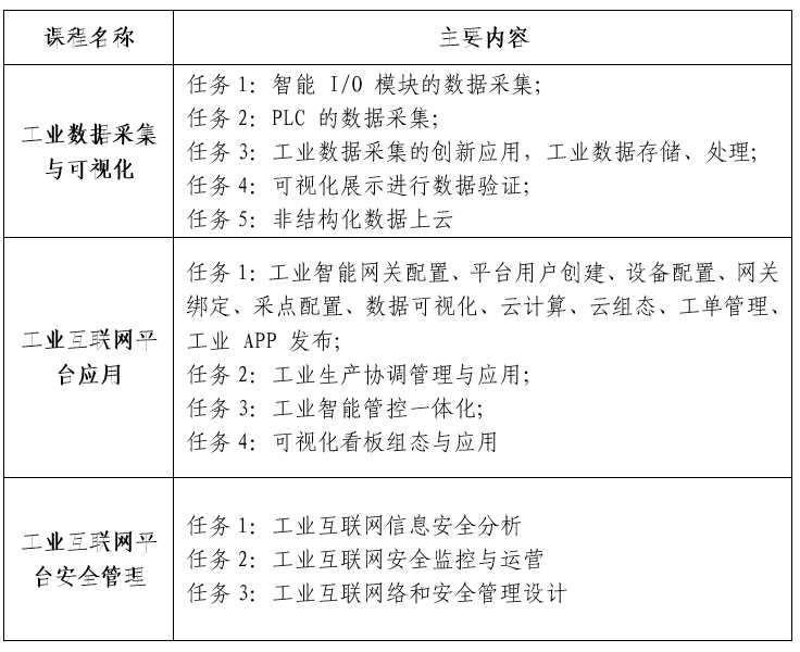 工業互聯網平臺應用課程設置: