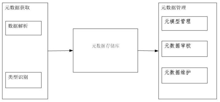 元數據管理實現了業務數據中實體和數據字段元素的定義、語義、業務規則和算法以及數據特征,便于完成業務數據的收集、組織和管理。元數據管理技術包括對元數據的采集、元數據的存儲以及元數據的管理,如圖1所示。