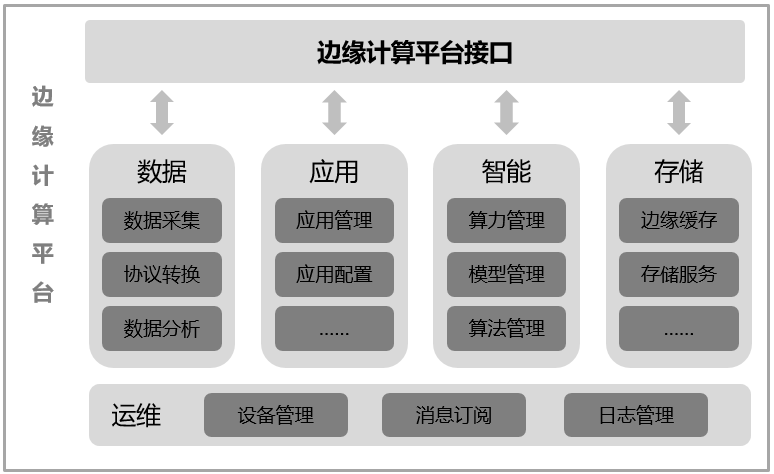 邊緣計算平臺融合網(wǎng)絡、計算、智能、存儲能力,作為工業(yè)應用重要承載,通過開放接口就近為工業(yè)應用提供基礎服務的能力支撐。本測試對邊緣計算平臺接口的數(shù)據(jù)、應用、智能、存儲、運維等方面提出要求。