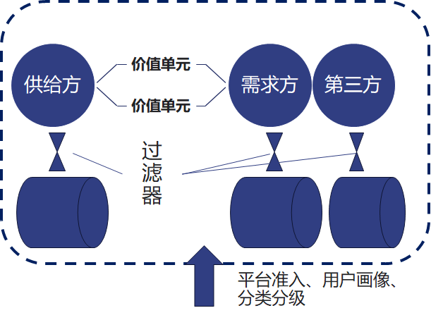 《平臺革命》提出了“核心互動”——一個平臺的通用應(yīng)用場景結(jié)構(gòu),即“參與者+價值單元+過濾器=核心互動”,在此本文稱之為“平臺的價值交互場景”。