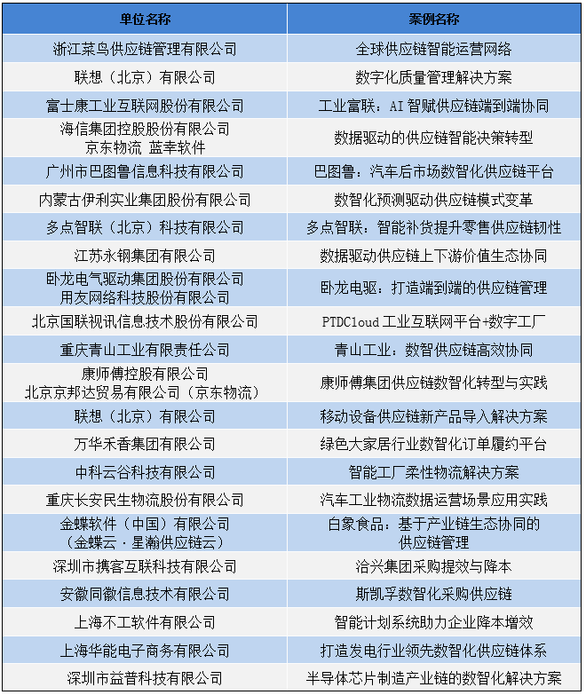 2024年數智化供應鏈案例入選名單公布