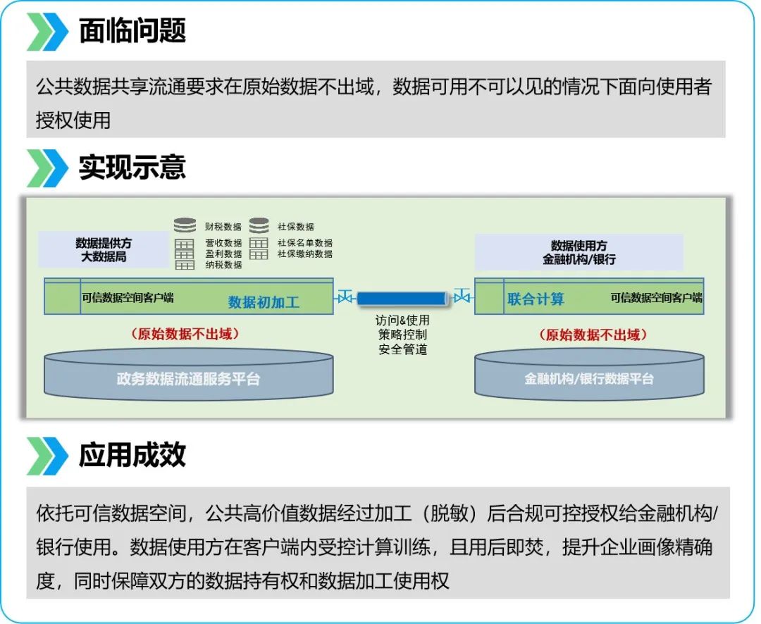 (2)公共數據授權運營與高效合規(guī)使用探索:確保公共數據可用不可見,可控可追溯,加速公共數據價值化進程