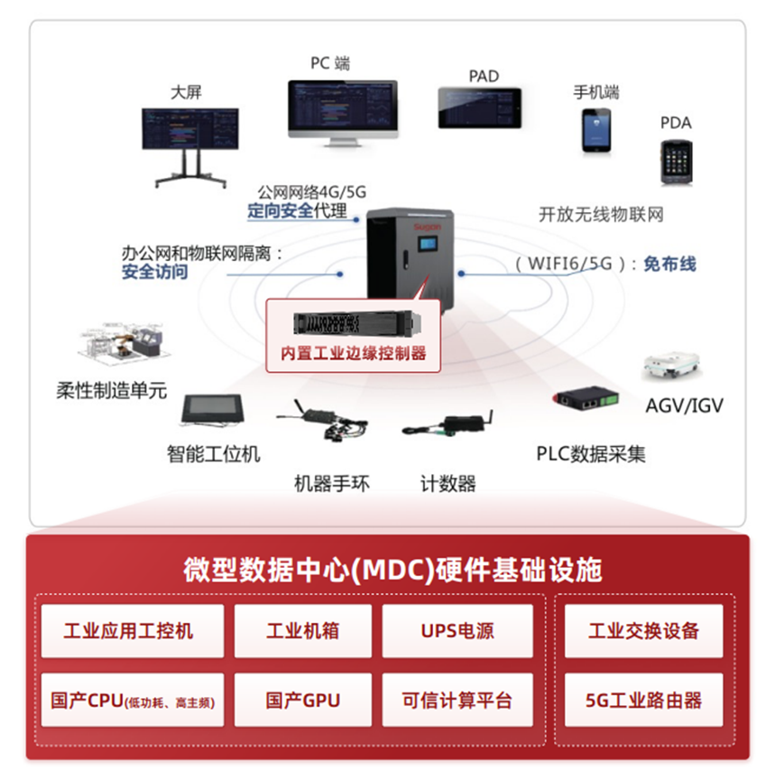 為加快賦能中小企業“智改數轉”,曙光網絡基于GWR-3230H工業邊緣控制器,打造曙光工業智能一體機解決方案,將工業邊緣控制器、工業交換機/路由器、觸摸大屏、UPS電源、各類傳感器等硬件,以及MES、SCADA、PLM等工業軟件全部集成在一個工業機柜當中,用工業安全邊緣云構建本地化智能制造平臺。