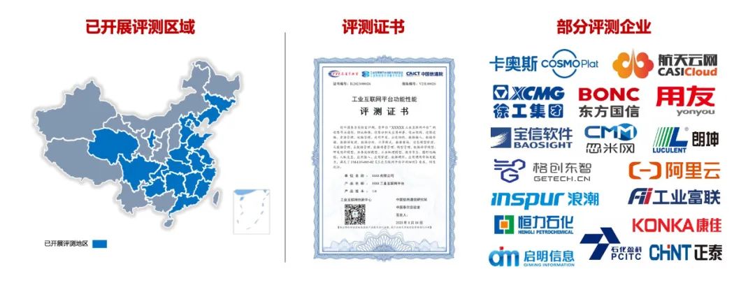 2018年至今,中國信息通信研究院信息化與工業(yè)化融合研究所工業(yè)互聯(lián)網(wǎng)測試中心累計在全國范圍內(nèi)評測20個省市近400余家工業(yè)互聯(lián)網(wǎng)平臺及千余款工業(yè)APP,涵蓋跨行業(yè)跨領(lǐng)域、特定行業(yè)/區(qū)域、特定專業(yè)技術(shù)等各類型平臺,設(shè)備管控、研發(fā)仿真、經(jīng)營管理等各類工業(yè)軟件。測評結(jié)果在促進平臺架構(gòu)設(shè)計、應(yīng)用開發(fā)、模式創(chuàng)新、產(chǎn)品服務(wù)等迭代升級的同時,也為江蘇、安徽、廣東、貴州、四川、遼寧、浙江、北京等地提供有力政策支撐,推進工業(yè)互聯(lián)網(wǎng)高質(zhì)量發(fā)展。
