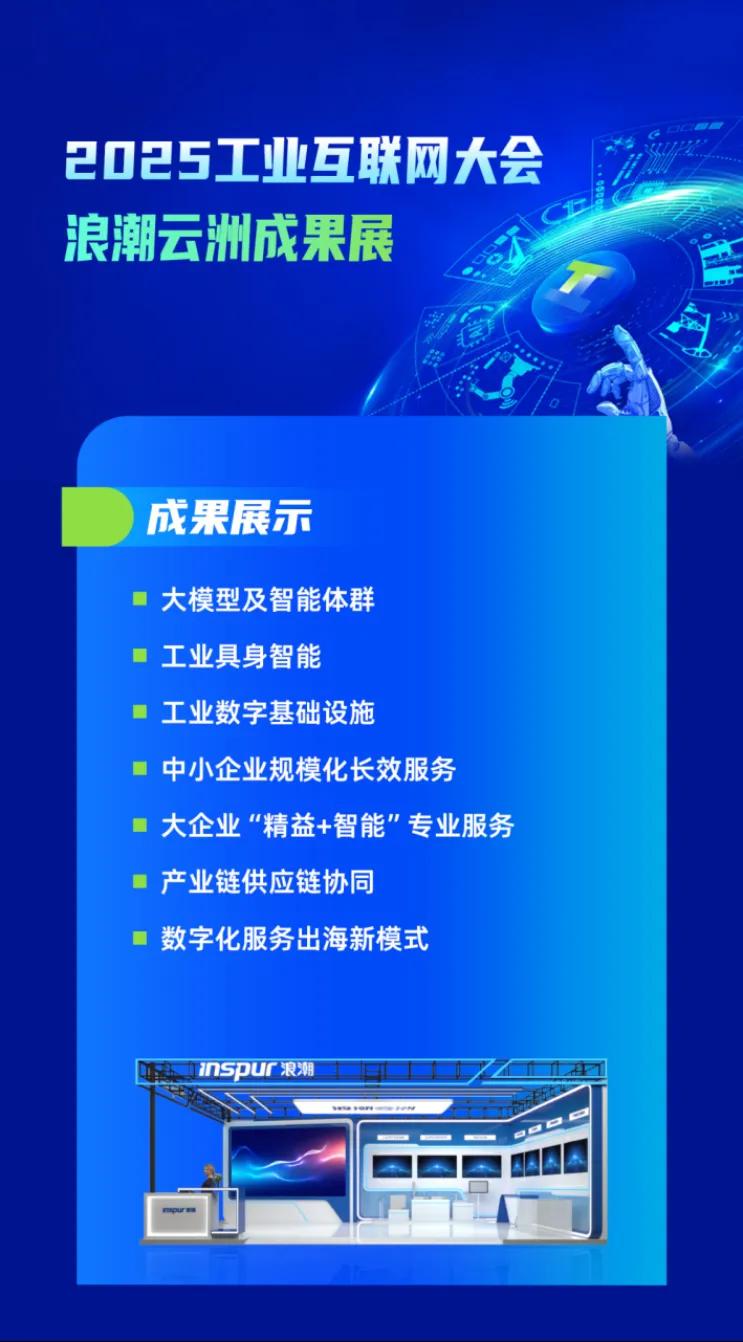在本屆成果展上,浪潮云洲以“人工智能賦能高質量發展”為主題將全方位展示在大模型及智能體群、工業具身智能、工業互聯網平臺及標識解析體系等工業數字基礎設施、中小企業規模化長效服務、大企業“精益+智能”專業服務、產業鏈供應鏈協同、數字化服務出海新模式等方面的工業互聯網領域的前沿技術與創新成果。