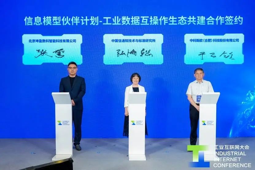 在信息模型伙伴計(jì)劃-工業(yè)數(shù)據(jù)互操作生態(tài)共建合作簽約儀式環(huán)節(jié),中國信通院技術(shù)與標(biāo)準(zhǔn)研究所所長張海懿、中科斯歐(合肥)科技股份有限公司董事長于萬欽、北京坤盈數(shù)科智能科技有限公司總經(jīng)理張譽(yù)共同簽約。后續(xù),三方將在工業(yè)數(shù)據(jù)互操作領(lǐng)域深化合作,共同開展技術(shù)研究、標(biāo)準(zhǔn)編制、案例打造等工作,攜手推動信息模型發(fā)展。