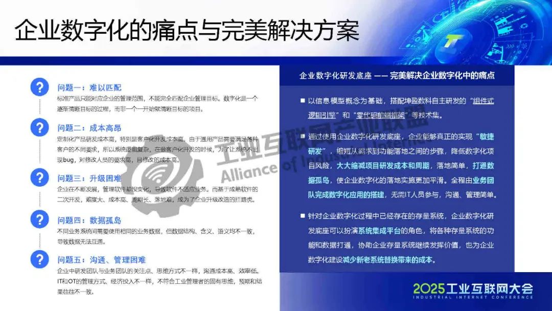 5月22日,在2025工業(yè)互聯網大會“新型工業(yè)控制與智能互操作發(fā)展專題活動”上,北京坤盈數科智能科技有限公司總經理張譽發(fā)表了《企業(yè)數字化研發(fā)底座》的主題演講。