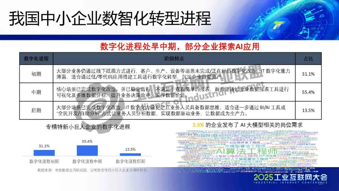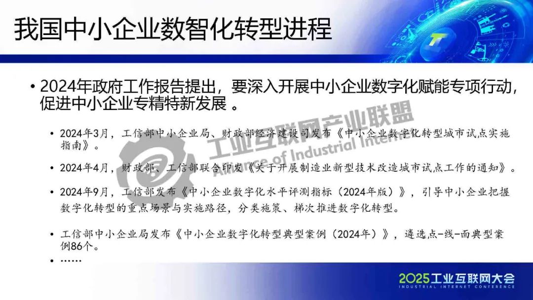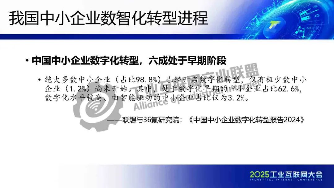 鄔愛其介紹,數(shù)智技術(shù)正成為中小企業(yè)韌性成長的關(guān)鍵驅(qū)動(dòng)力。數(shù)智技術(shù)通過提升協(xié)同效率、優(yōu)化供應(yīng)鏈和構(gòu)建創(chuàng)新生態(tài),顯著增強(qiáng)企業(yè)競爭優(yōu)勢,但其效能取決于組織的互補(bǔ)性投入和市場承載空間。我國中小企業(yè)數(shù)智化轉(zhuǎn)型進(jìn)程加速,政策支持力度加大,2024年多項(xiàng)政策文件出臺推動(dòng)試點(diǎn)和評測,但整體仍處早期階段。數(shù)智技術(shù)通過構(gòu)建數(shù)字信用體系賦能韌性成長,例如金蝶信科的AI融資匹配方案,利用產(chǎn)業(yè)鏈數(shù)據(jù)圖譜穿透上下游風(fēng)險(xiǎn),助力企業(yè)精準(zhǔn)識別客戶與供應(yīng)商。專精特新企業(yè)成為轉(zhuǎn)型中堅(jiān),集群化、“鏈?zhǔn)健鞭D(zhuǎn)型模式逐步成型。未來需進(jìn)一步解決技術(shù)嵌入能力與市場變現(xiàn)的協(xié)同問題。