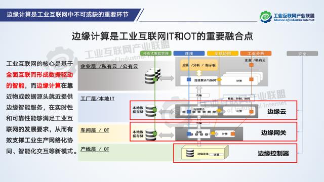 工業互聯網的核心是基于全面互聯而形成數據驅動的智能,而邊緣計算在靠近物或數據源頭就近提供邊緣智能服務,協同調度計算、存儲、網絡等資源,實現企業內各層數據的縱向集成及實時高效處理,充分釋放數據價值,從推動信息流動和集成、實現知識的模型化等方面推動工業互聯網創新發展。面對離散制造業轉型發展的迫切需求,邊緣計算通過提供設備之間互聯互通、OT系統和IT系統融合互通以及部署于工業現場的實時數據采集、匯聚、存儲、分析等能力,滿足了離散制造業在敏捷聯接、實時業務、數據優化、應用智能、安全與隱私保護等方面的關鍵需求。同時,基于邊緣控制器、邊緣網關、邊緣云的層級化部署架構,邊緣計算促進離散制造過程各個環節高度互動和協同,構建設計、生產與供應鏈資源有效組織的協同制造體系,為離散制造業數字化轉型注入新活力。