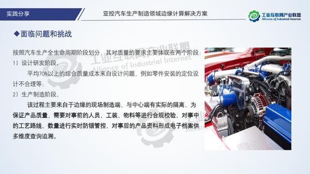 汽車生產制造屬于大批量離散制造,對于效率有較高的要求,例如生產效率、人均產值、設備稼動率、成品周轉率、進/出貨延誤率等。邊緣計算即時的數據處理能力,能夠加速數據傳輸,快速響應來自產線側的物料防錯與盤點,工藝路徑與參數防錯,硬件與機械防錯等請求,從而快速給出判斷指導生產執行;此外,邊緣計算還可以大大緩解中心側的計算壓力,單就汽車制造企業而言,一臺整車約由 2 萬多個零部件組裝而成,結合批量式生產制造,如果所有這些數據與邏輯處理請求都上傳到中心端計算,則會造成中心負載壓力繁重,資源損耗巨大等問題。綜上,邊緣計算是汽車制造企業提升效率與質量的有力支撐。