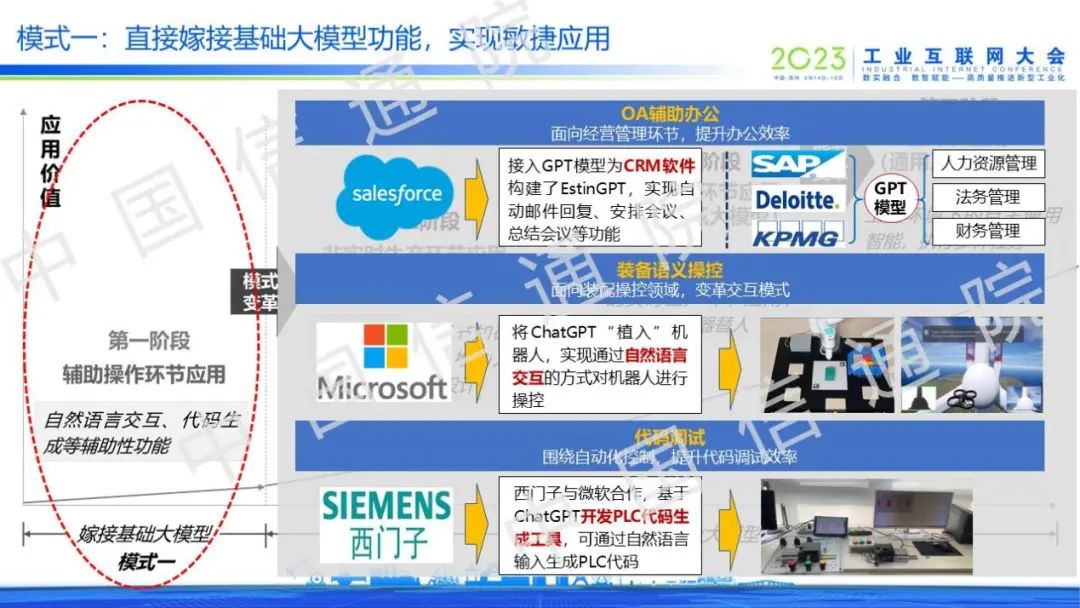 以直接嫁接基礎大模型功能為主的模式一是利用基礎大模型的自然語言理解、代碼生成等能力,實現OA輔助辦公、裝備語義操控和代碼調試等探索應用,但均已提升效率為主,尚未觸及工業核心環節。