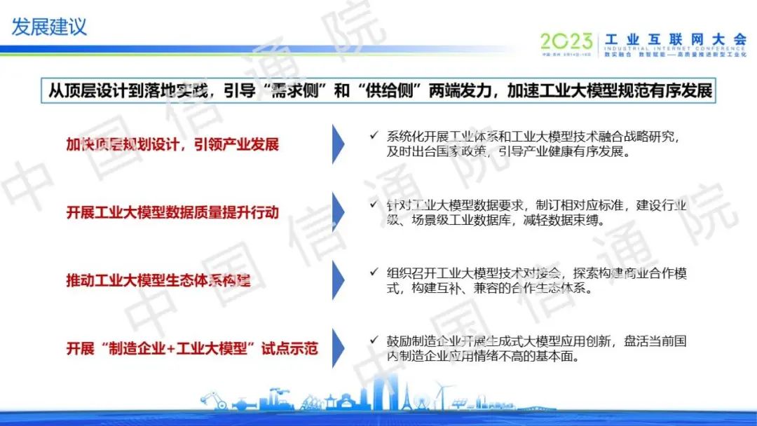 工業大模型的發展過程中面臨著數據、產業、技術三大挑戰,亟需從頂層設計到落地實踐提出發展策略,引導“需求側”和“供給側”兩端發力,加速工業大模型規范有序發展。