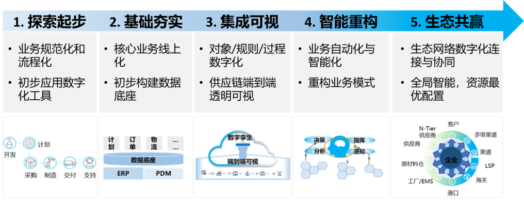 供應(yīng)鏈數(shù)字化轉(zhuǎn)型水平劃分為5個(gè)階段