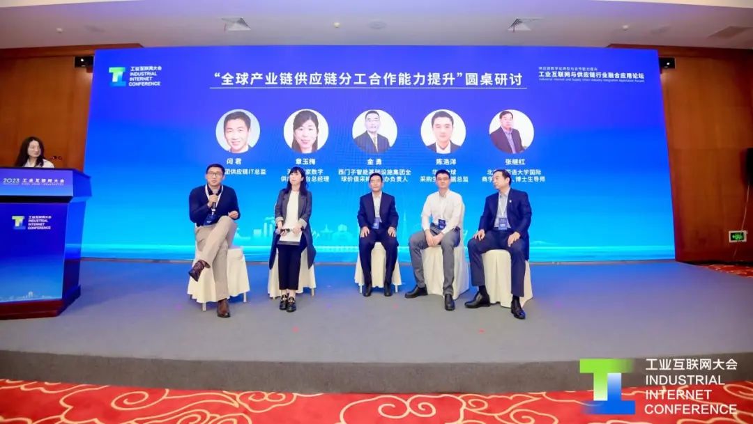 在2023工業(yè)互聯(lián)網(wǎng)大會“工業(yè)互聯(lián)網(wǎng)與供應鏈行業(yè)融合應用”論壇上,聯(lián)想集團供應鏈IT總監(jiān)閆君主持“全球產(chǎn)業(yè)鏈供應鏈分工合作能力提升”圓桌研討,和四位嘉賓進行精彩互動討論。
