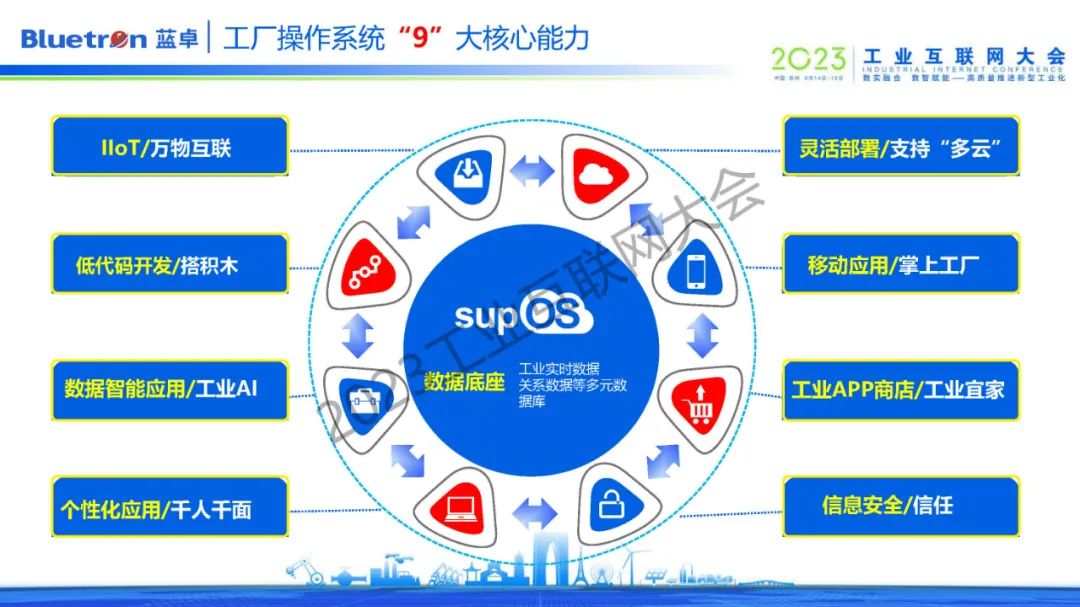 最后,平臺豐富定義,藍卓針對工業操作系統按服務對象、服務內容,做了不同層次的設計,包括為工廠做的工廠操作系統,行業平臺的行業云操作系統以及產業大腦操作系統。