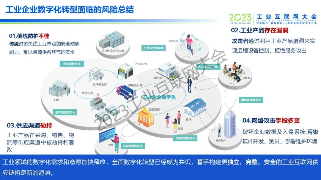 “工業(yè)領(lǐng)域的數(shù)字化需求和意愿加快釋放,全面數(shù)字化轉(zhuǎn)型已經(jīng)成為共識(shí)。然而,工業(yè)企業(yè)面臨著傳統(tǒng)防護(hù)效果不佳、工業(yè)產(chǎn)品存在漏洞、工業(yè)產(chǎn)品在供應(yīng)渠道中被劫持和篡改、網(wǎng)絡(luò)攻擊手段多變等風(fēng)險(xiǎn),構(gòu)建更獨(dú)立、完整、安全的工業(yè)互聯(lián)網(wǎng)供應(yīng)鏈將是新的趨勢。”