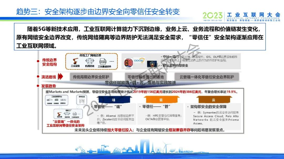 “數字化轉型加速工業互聯網安全體系化布局,以 IT 視角為主的安全產品和服務難以滿足工業互聯網的實際需求,工業互聯網安全技術產品將向工業場景下沉,不斷融合業務流程和企業定制化需求。”