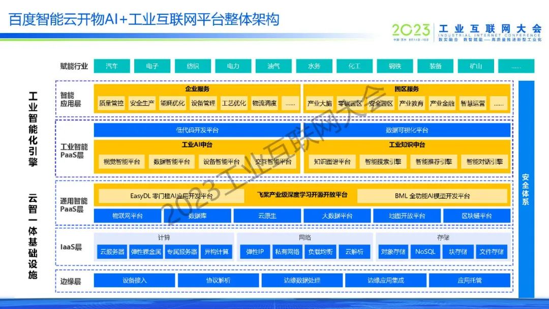 “百度智能云開(kāi)物工業(yè)互聯(lián)網(wǎng)平臺(tái),以人工智能為特色,加速產(chǎn)業(yè)智能化升級(jí),助力園區(qū)高質(zhì)量發(fā)展。“