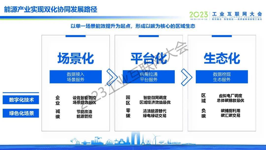 “雙化協(xié)同發(fā)展應(yīng)該是從企業(yè)自身場景落地場景看,隨著市場機(jī)制的逐漸完善包括技術(shù)進(jìn)步,在大的區(qū)域內(nèi)實現(xiàn)碳的資源優(yōu)化配置,最終實現(xiàn)雙化協(xié)同的長期愿景。隨著資源配置的區(qū)域逐漸擴(kuò)大,區(qū)域內(nèi)場景逐漸豐富,平臺匯聚的數(shù)據(jù)量越來越多,對云計算、大數(shù)據(jù)、人工智能等數(shù)字化技術(shù)的有更高需求來實現(xiàn)場景綠色化。”