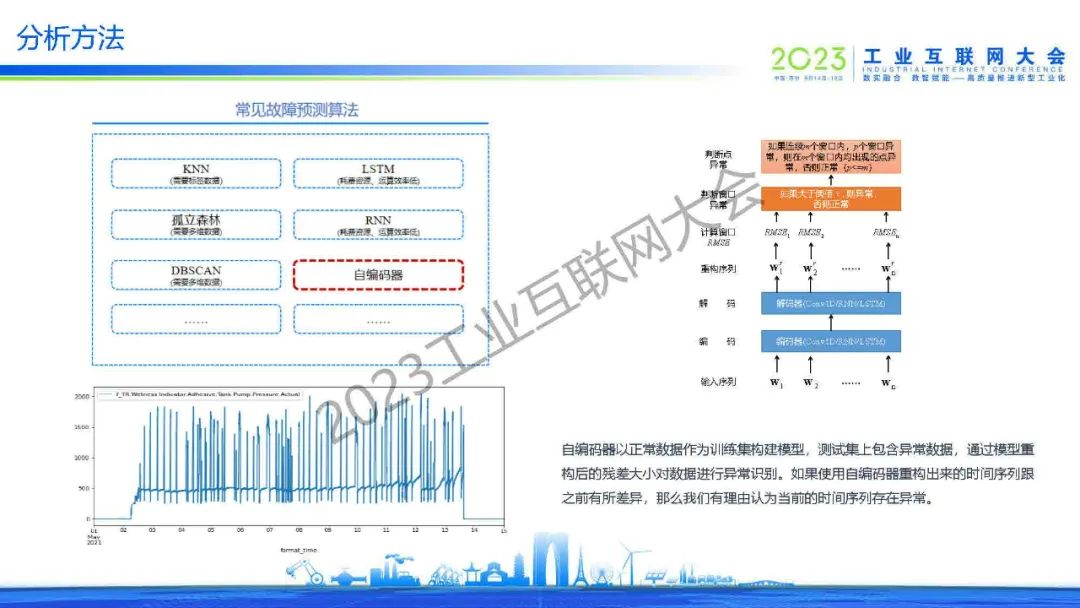 “常見的故障預測算法:自編碼器以正常數據作為訓練集構建模型,測試集上包含異常數據,通過模型重構后的殘差大小對數據進行異常識別。如果使用自編碼器重構出來的時間序列跟之前有所差異,那么我們有理由認為當前的時間序列存在異常。