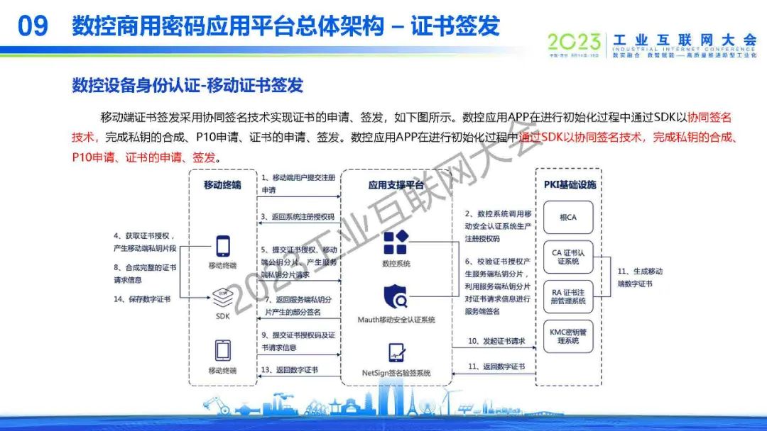 “隨著移動互聯網、物聯網的高速發展,人們對手機等智能終端的利用越來越高,在數控系統領域中,手機等智能終端在數控系統中的功能角色也越來越重,但傳統的智能手機不具備安全存儲、使用數字證書的功能,因此可以構建空中發證書系統,結合PKI系統實現,手機等智能終端的數字證書應用體系,以滿足數控系統在多種應用場景下的安全密碼應用。”
