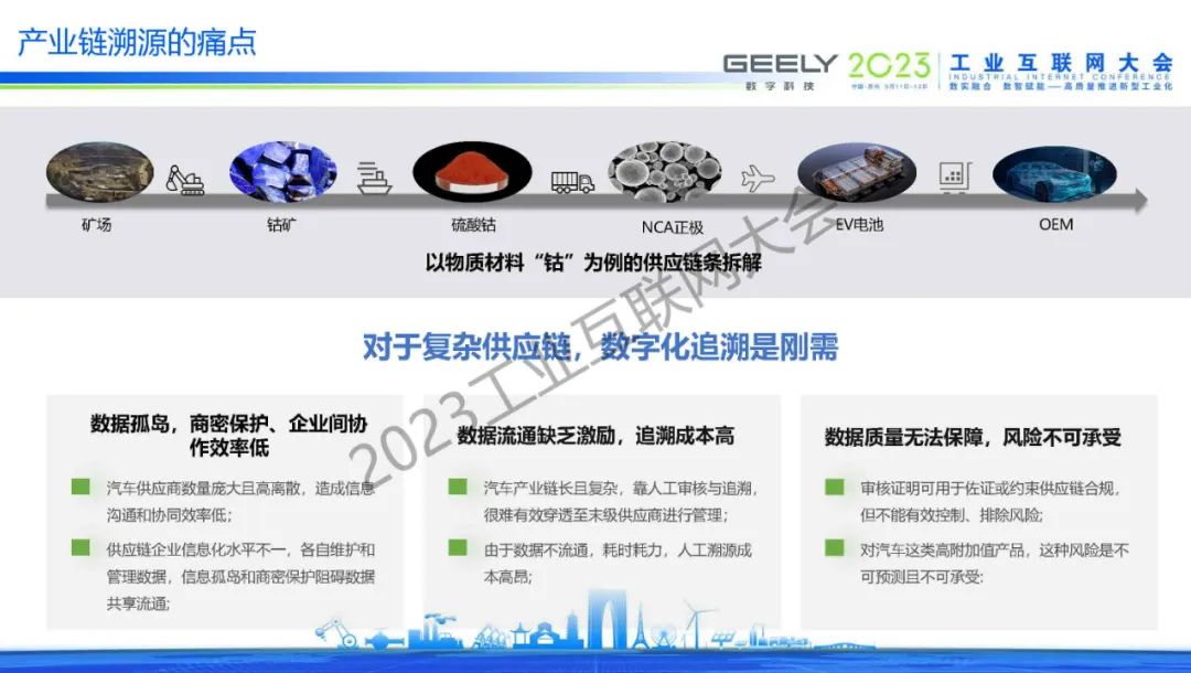 6月16日,在2023工業(yè)互聯(lián)網(wǎng)大會(huì)“工業(yè)互聯(lián)網(wǎng)+區(qū)塊鏈創(chuàng)新發(fā)展論壇”上,無錫吉利數(shù)字科技有限公司產(chǎn)品總監(jiān)賽磊發(fā)表了《基于區(qū)塊鏈的工業(yè)互聯(lián)網(wǎng)產(chǎn)業(yè)供應(yīng)鏈溯源云平臺(tái)實(shí)踐》的主題演講。