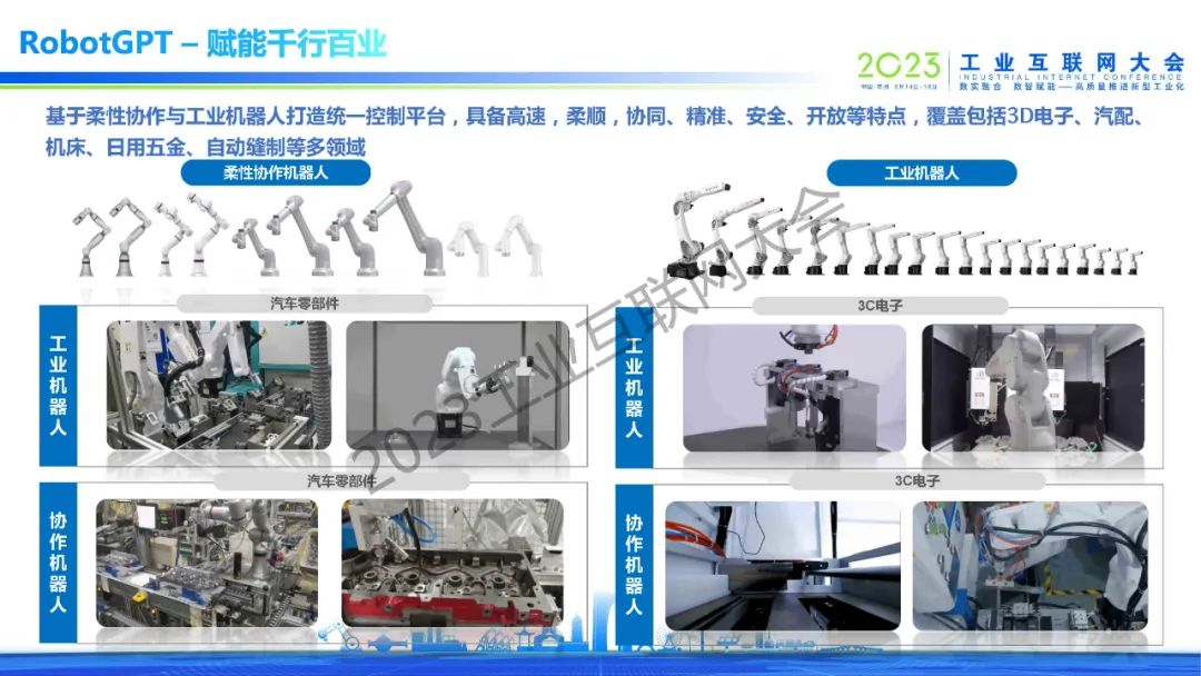 “多模態大模型賦能機器人基于柔性協作與工業機器人打造統一控制平臺,具備高速,柔順,協同、精準、安全、開放等特點,覆蓋包括3D電子、汽配、 機床、日用五金、自動縫制等多領域 ”